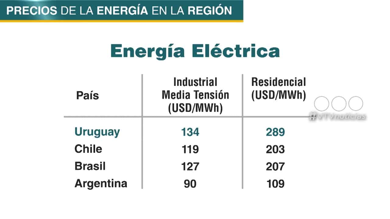 El costo residencial que paga Uruguay es de aproximadamente 289 dólares megavatio hora, mientras que en Argentina es de 109 dólares.